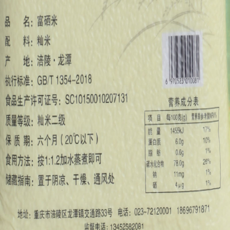 重庆涪陵渝妹儿富硒米 5kg