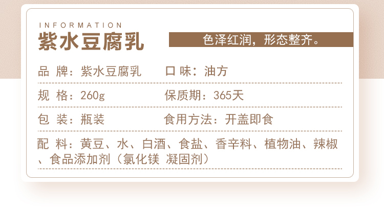 开州区紫水豆腐乳(油方)260g*3瓶