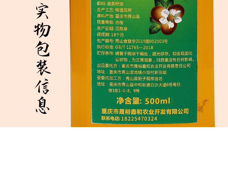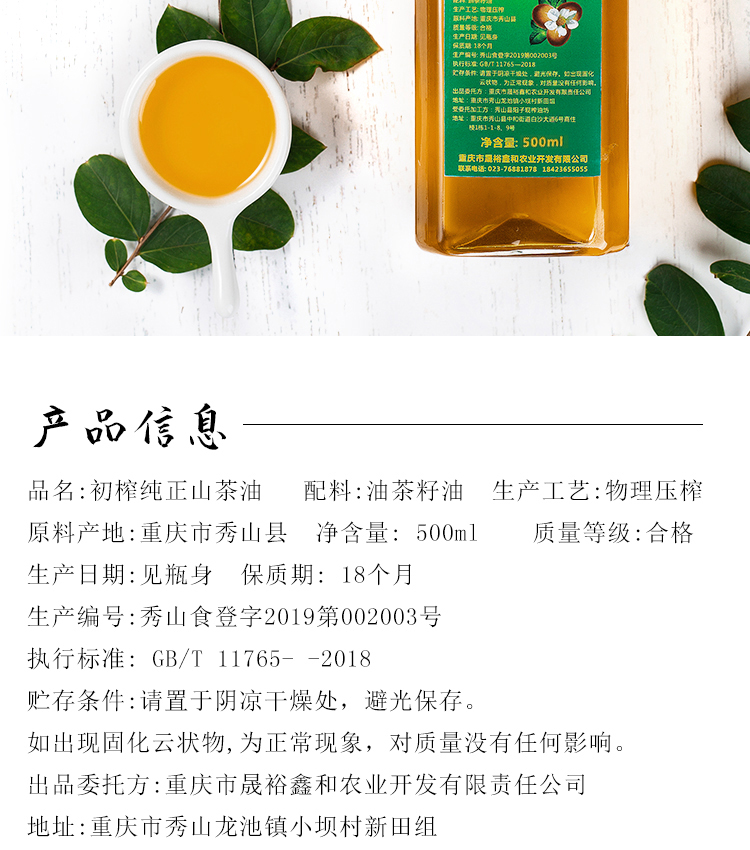 秀山县馀味鲜山茶油500g/瓶